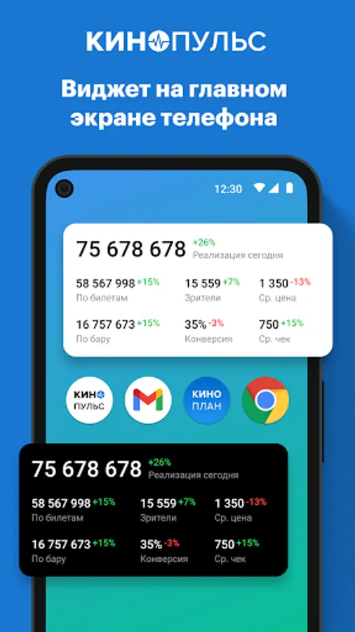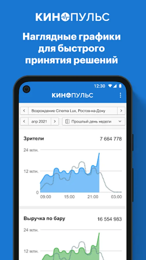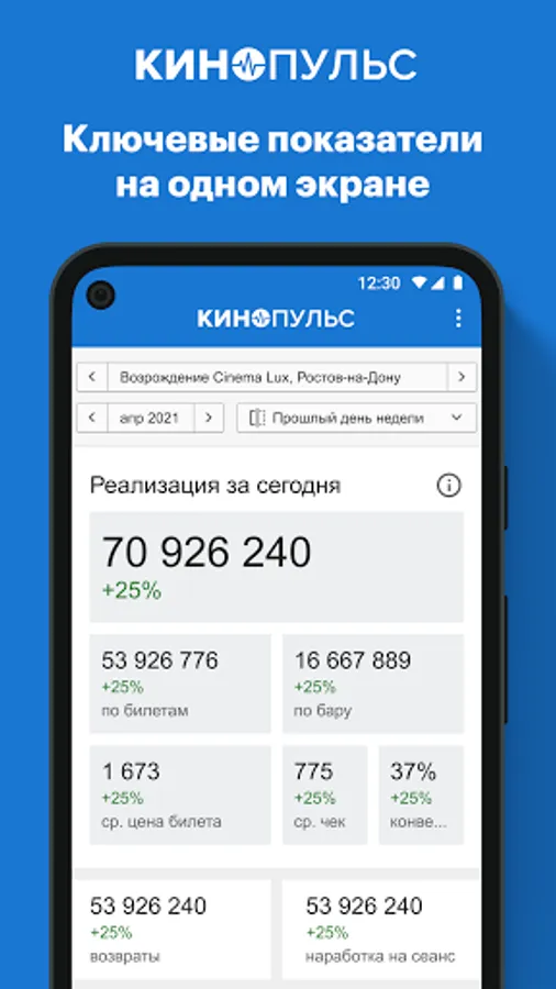 Track all the performance indicators of the cinema promptly and make the right decisions using the KinoPulse application.