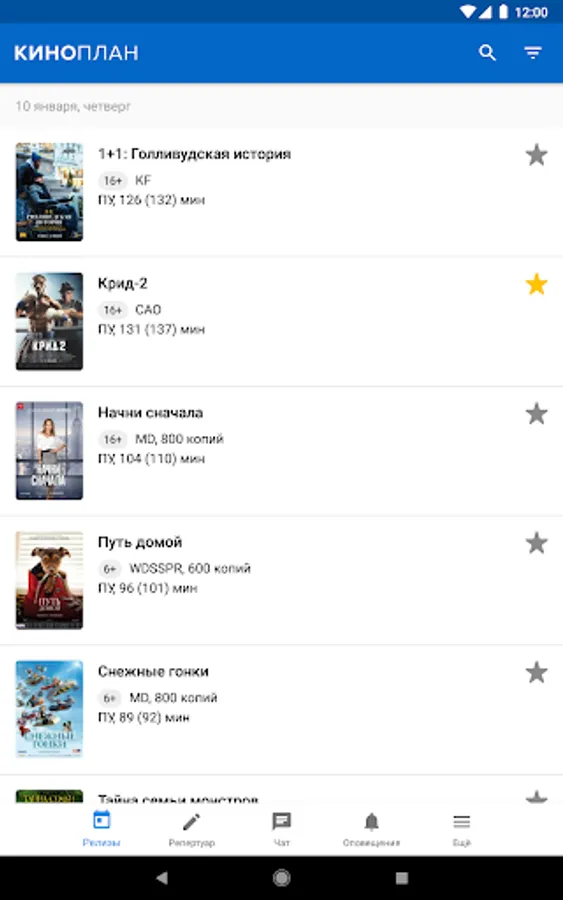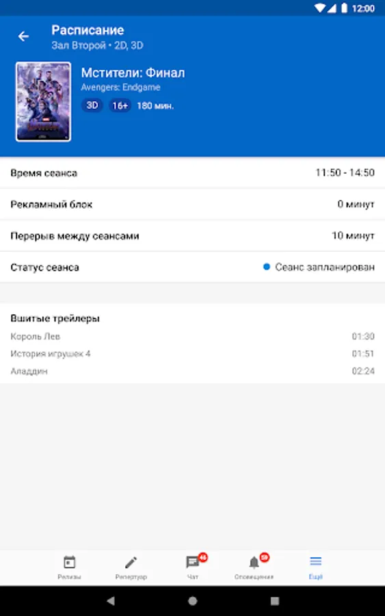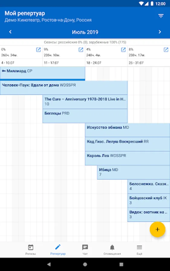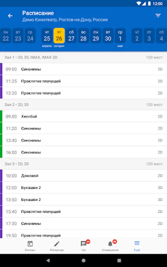 ● Schedule and repertoire in your phone. Create and edit the cinema repertoire directly in the mobile application. Get complete schedule and session information