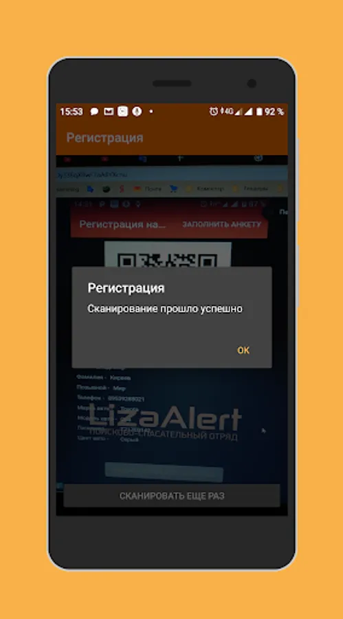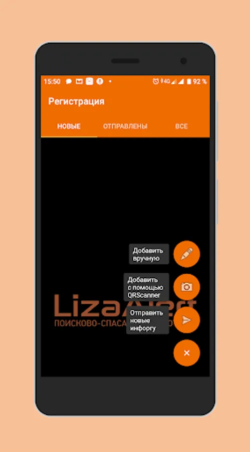Allows you to scan the QR code of volunteers or enter data manually, send them to informers. In the implementation of the breakdown of volunteers into groups.
