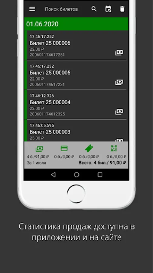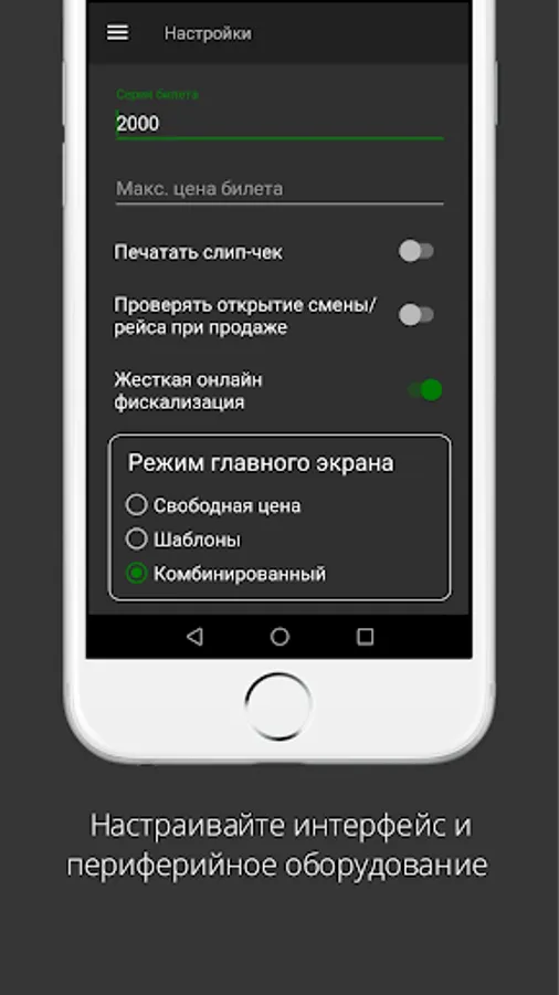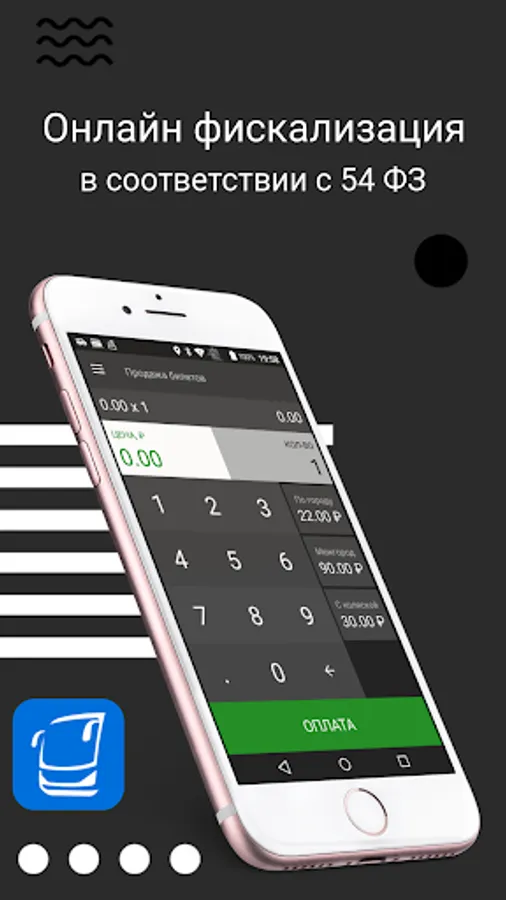 to fulfill the requirements of 54-FZ (the use of an online cash desk on board the vehicle). The application interacts with a cloud-based online ticket office, generates and prints tickets,