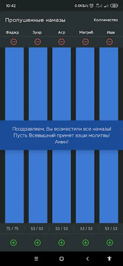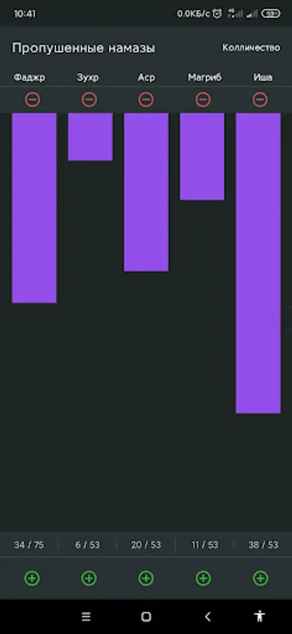 This application will help Muslims to track the reimbursement of missed prayers in a convenient and minimalist design.