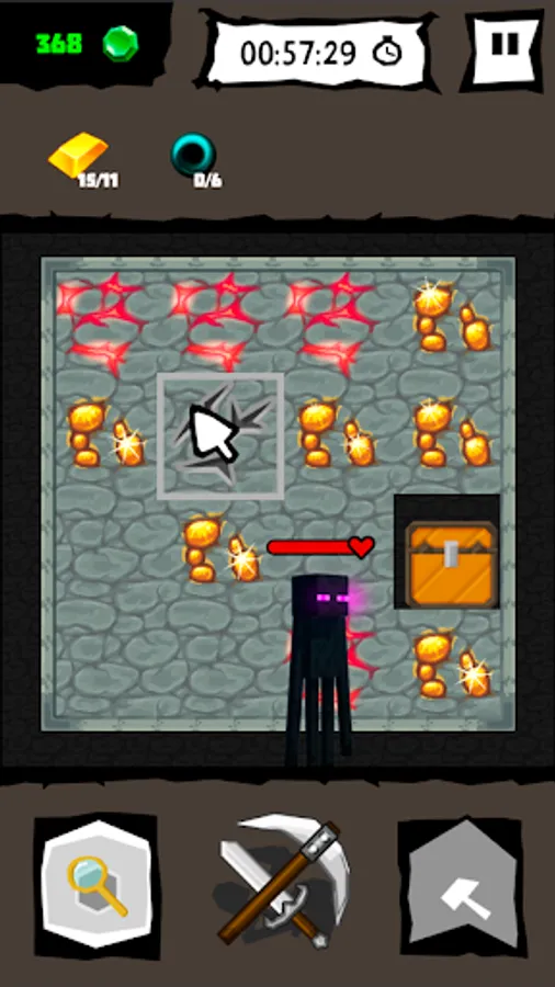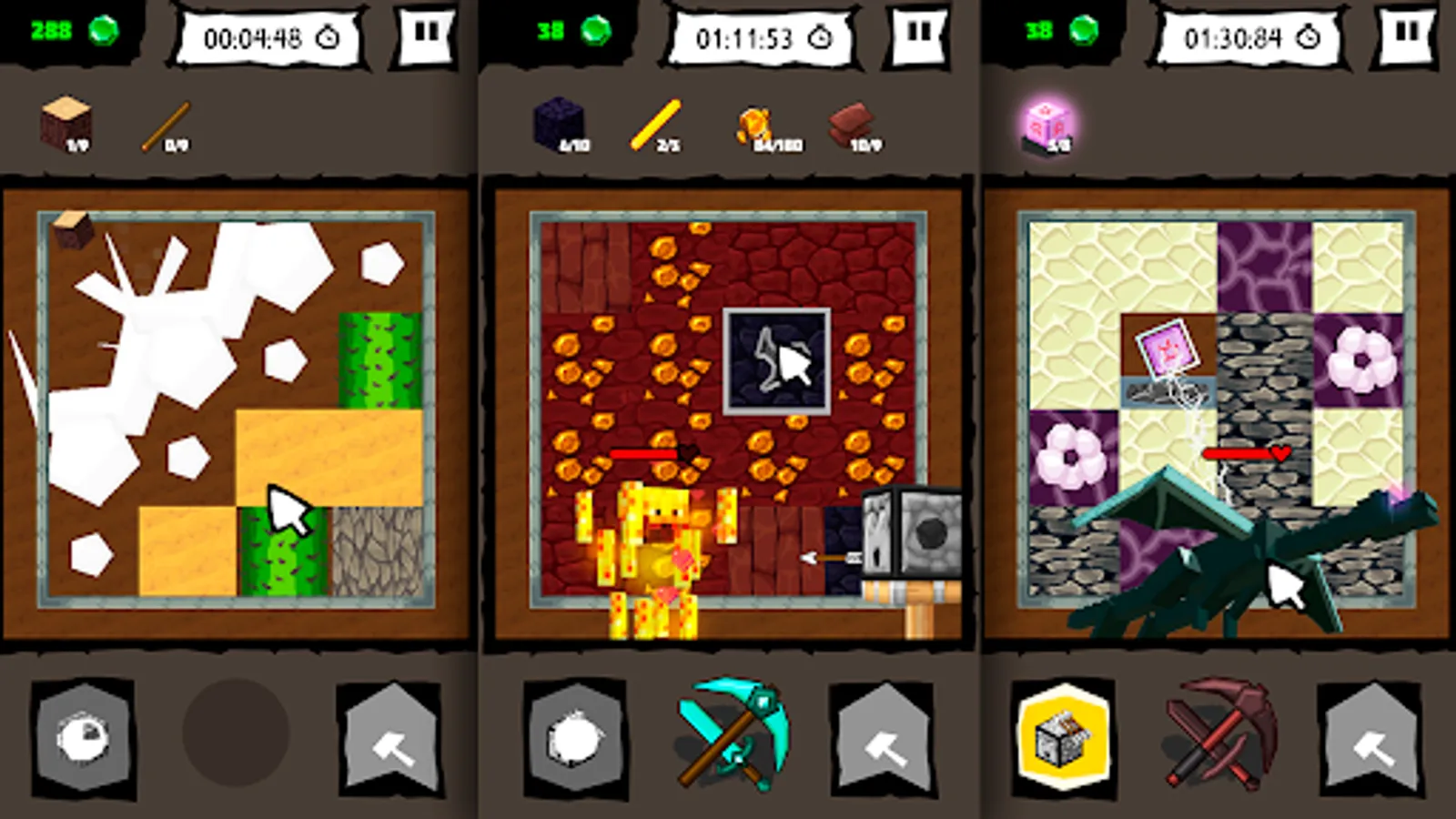 Enjoy this exciting challenge, which is a 4x4 grid filled with random blocks. Your task is to break these blocks by tapping on the screen without wasting time, acting like a real speedrunner. After extracting the necessary resources, you can make a new pickaxe from various resources, for example, diamonds and netherite. And after receiving a netherite set of tools, you need to deal with the End Dragon without delay, after defeating which, a new speedrun record awaits you!