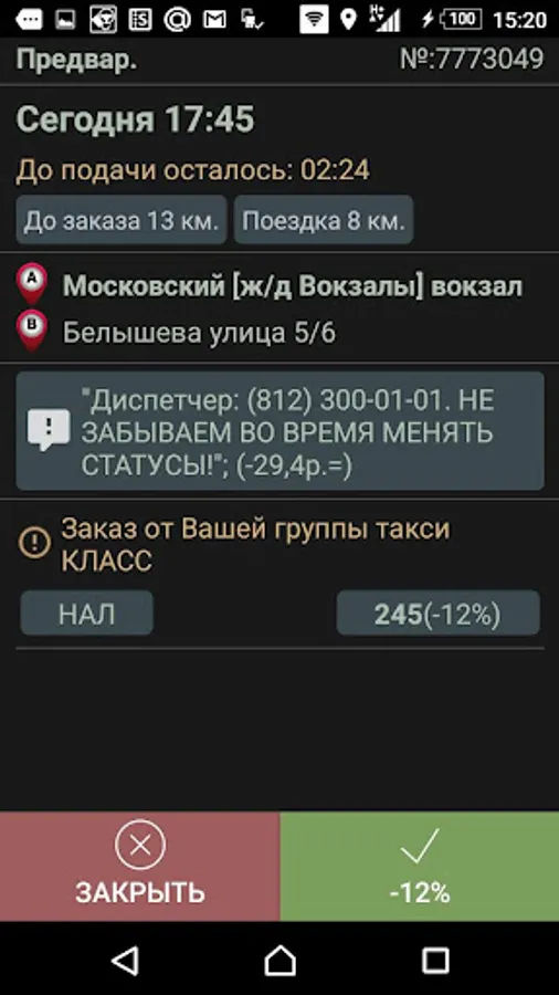 Very handy app for a taxi driver in the service of "class" in the city of St. Petersburg and Moscow. Terms of cooperation :