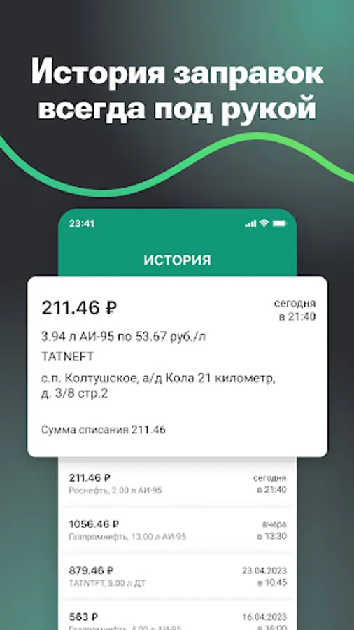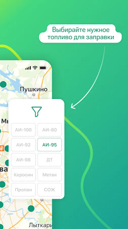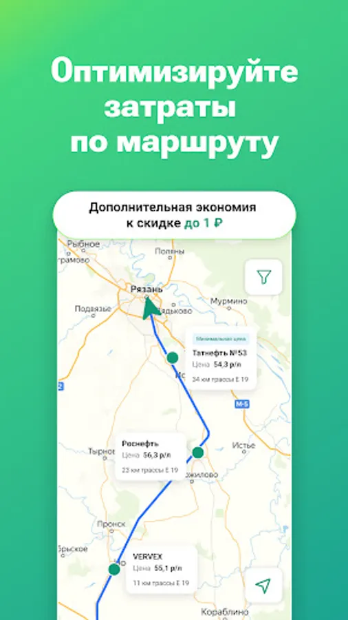 - Service of recommendations for choosing gas stations on the route - additional savings in addition to the discount up to 1 ruble per kilometer of the way