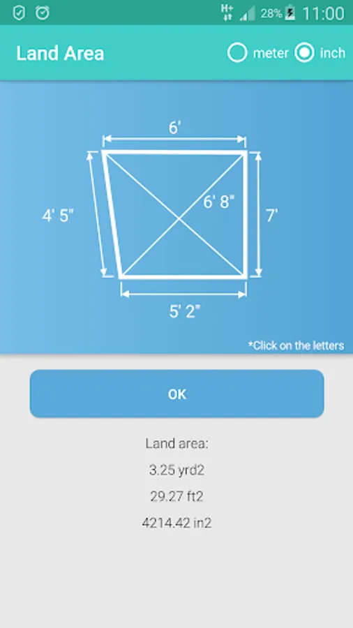Calculate area of 4 angle land.
