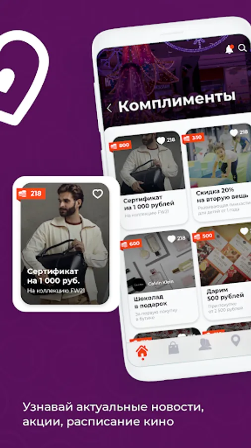 – Scan receipts from shopping at the mall, get points and exchange them for compliments!