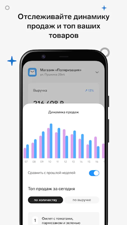 The application is an addition to the main system of Kontur.Market services. Now you can quickly find out the general summary of outlets, check the status of cash registers and monitor sales dynamics. We continue to develop the mobile Market and add new features.