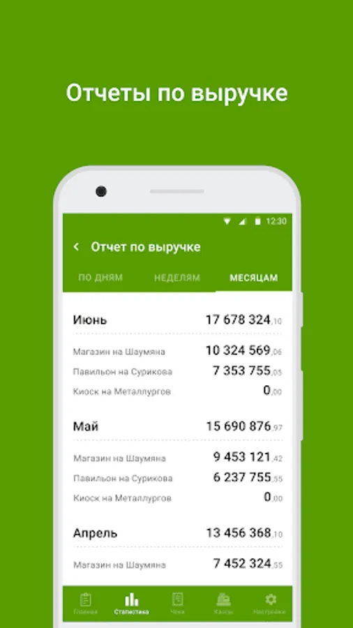 - track the dynamics of revenue at any scale: from the cash register to the organization.