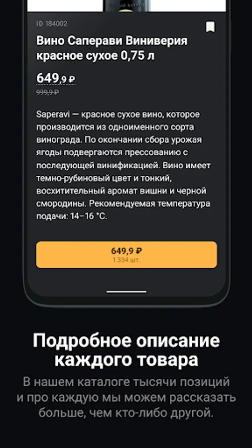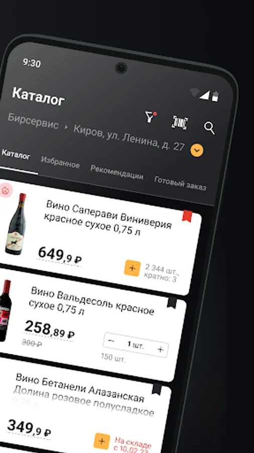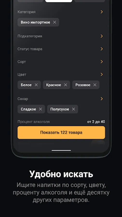 Our application allows you to get acquainted with the entire range, including spirits, beer products and soft drinks. You can also easily checkout, track the status of your current order, payment and delivery, all in one place on your smartphone.