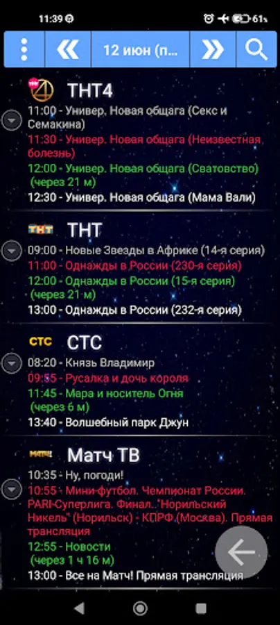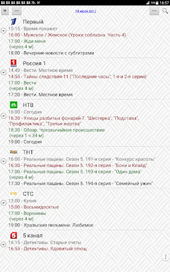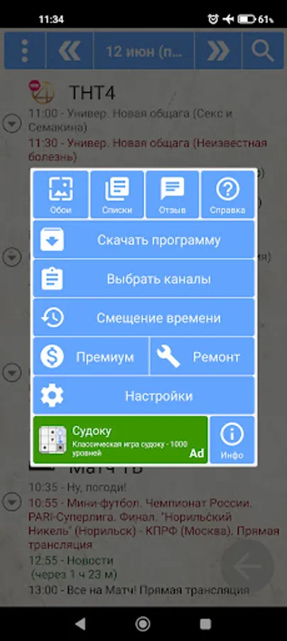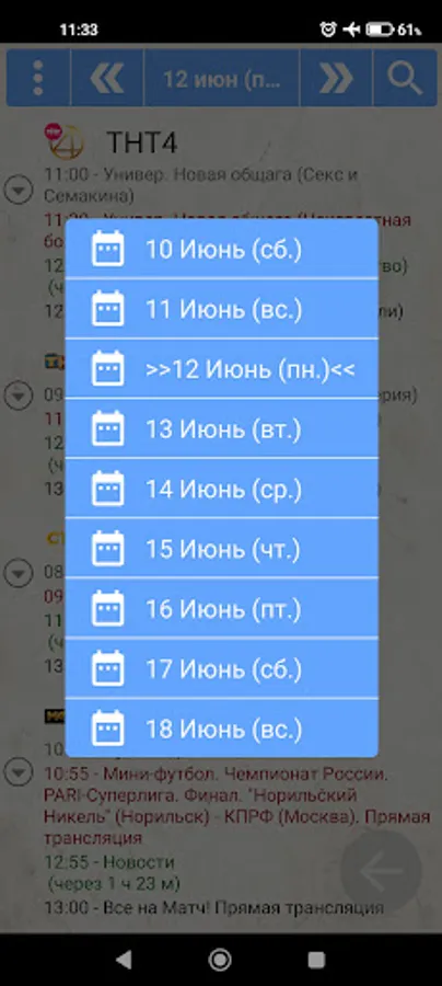 A long press on the channel name will open the full program for it, on all available days. In this window, you can set the channel number on the remote