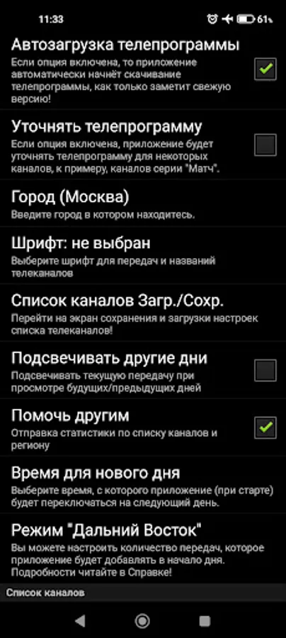 Attention! For some regions (time zones), for example for the Far East, you need to adjust the time offset! Details in the help.
