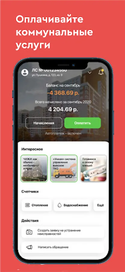 - You will not miss the dates of transfer of readings and payments thanks to reminders from the application;