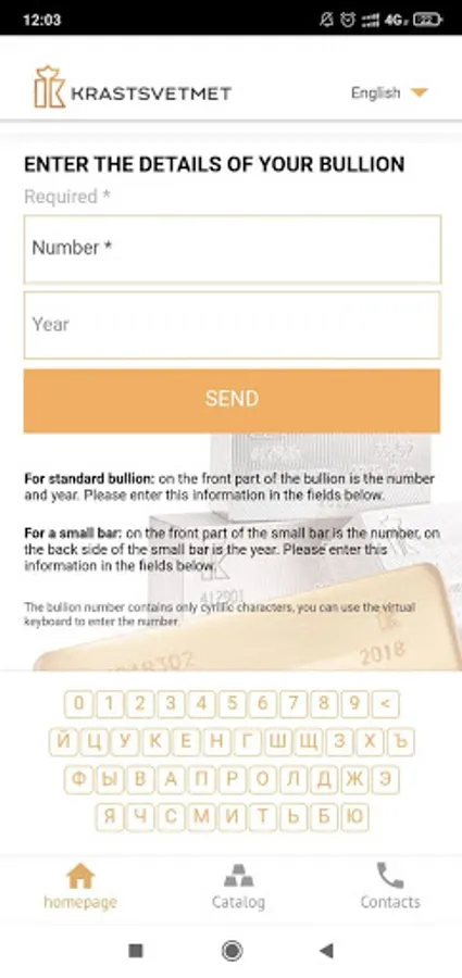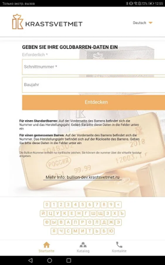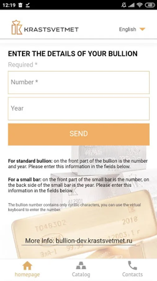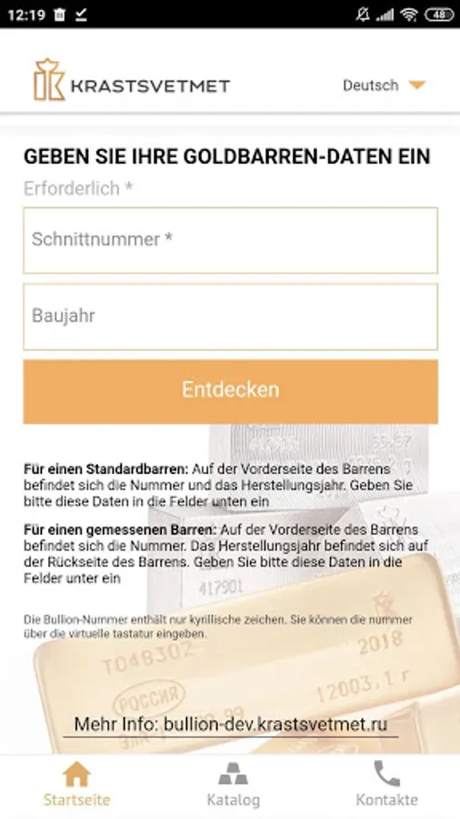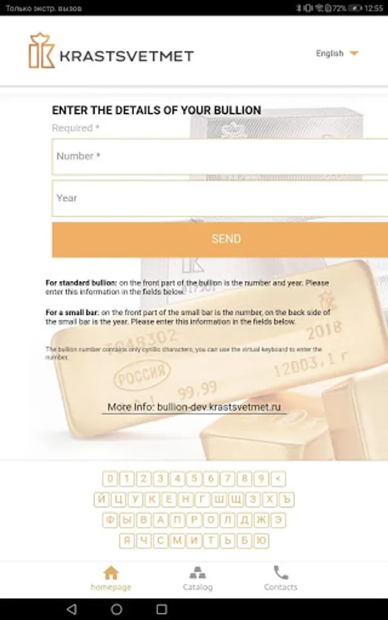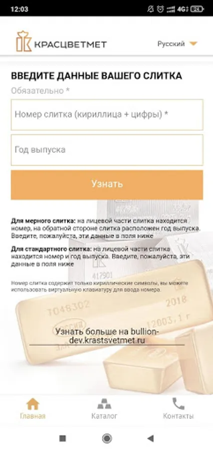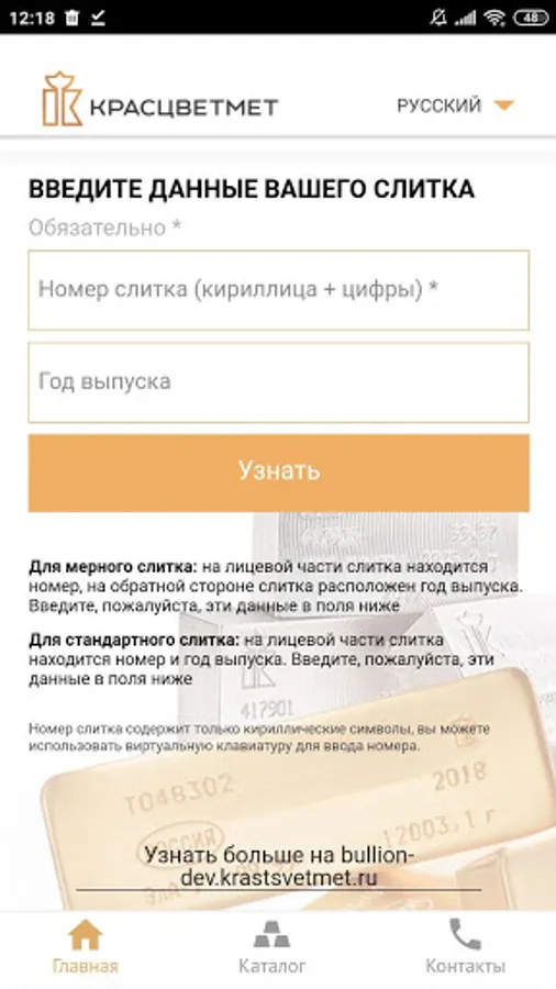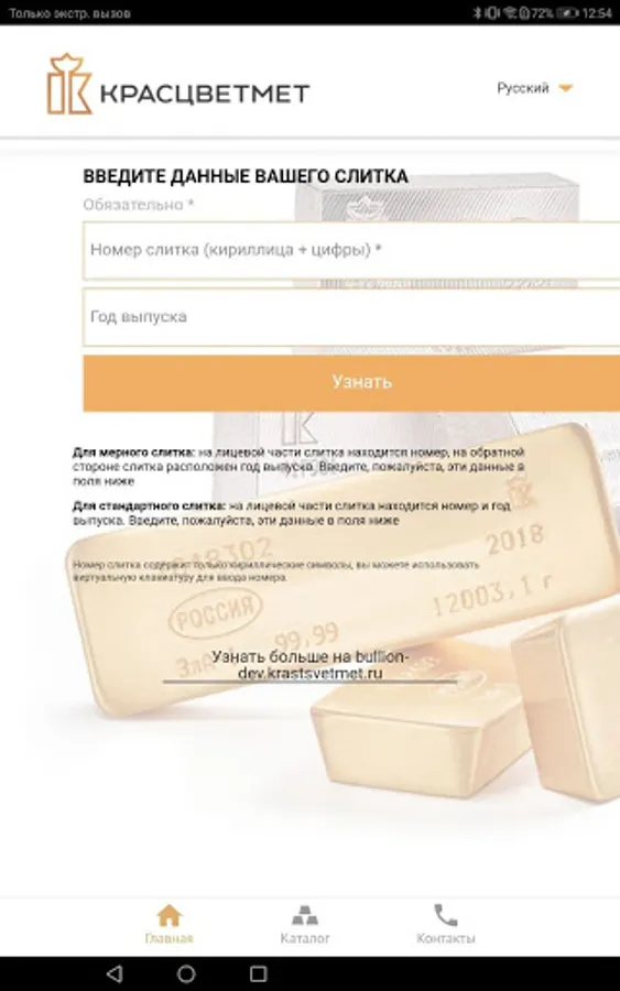The buyer enters the number indicated on the ingot into the form, specifies the year of issue if necessary (ingots of different years of issue may have the same number). As a result, he receives information that the ingot was produced at Krastsvetmet, the weight of the product and other additional data. If the number is not correct, then this information is also entered on the screen.