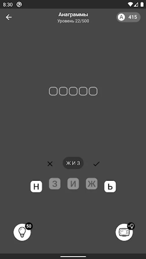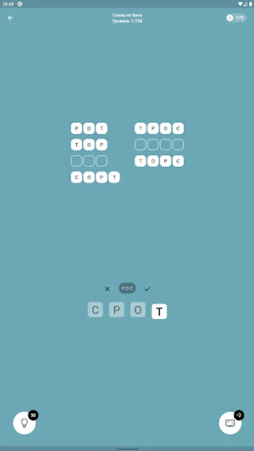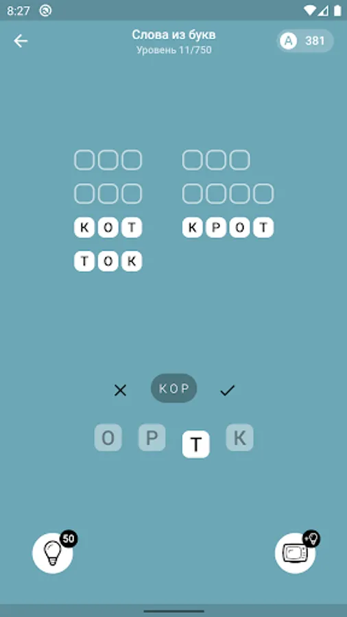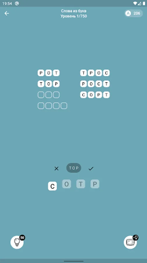 Make words from letters - you are offered from 4 to 8 letters, from which you need to make a certain number of hidden words (nouns). The meaning is very similar to games where you need to make words from a word. Collect the words and go to the next level, there are currently 750 levels available.