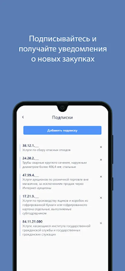 Subscribe to receive notifications of new purchases for the specified points of the OKPD;
