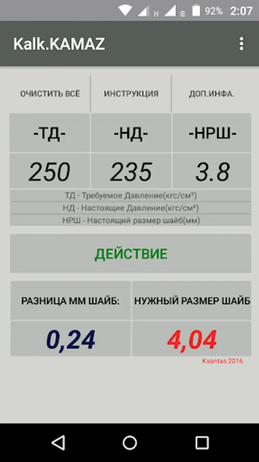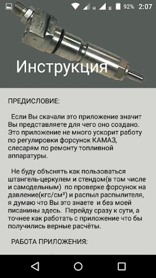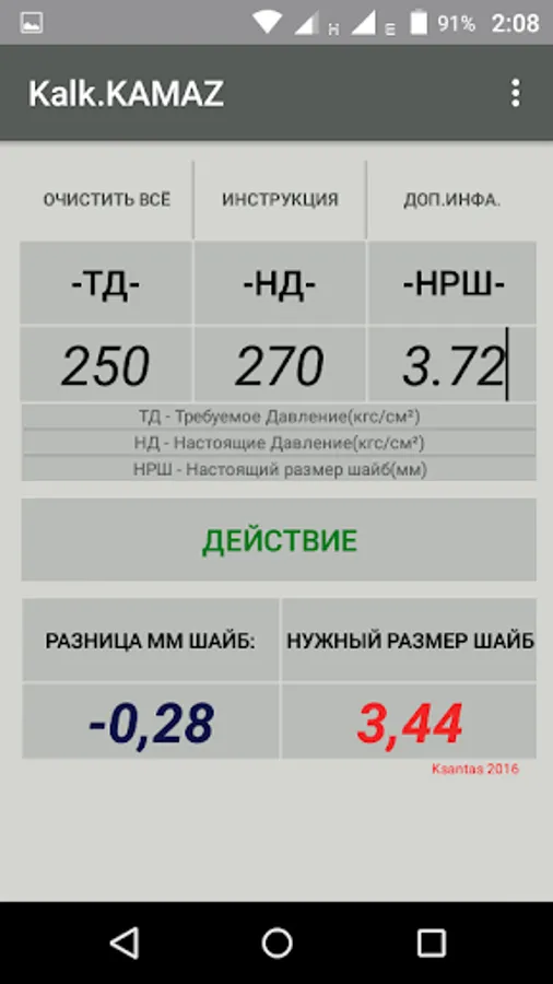 This application can be used to calculate the size of washers not only in a KAMAZ injector, but also in all injectors where washers are used to set the Required pressure.