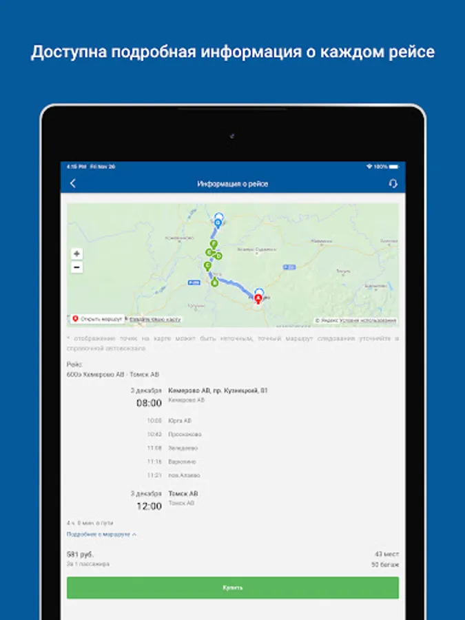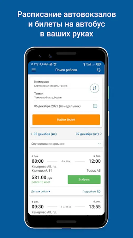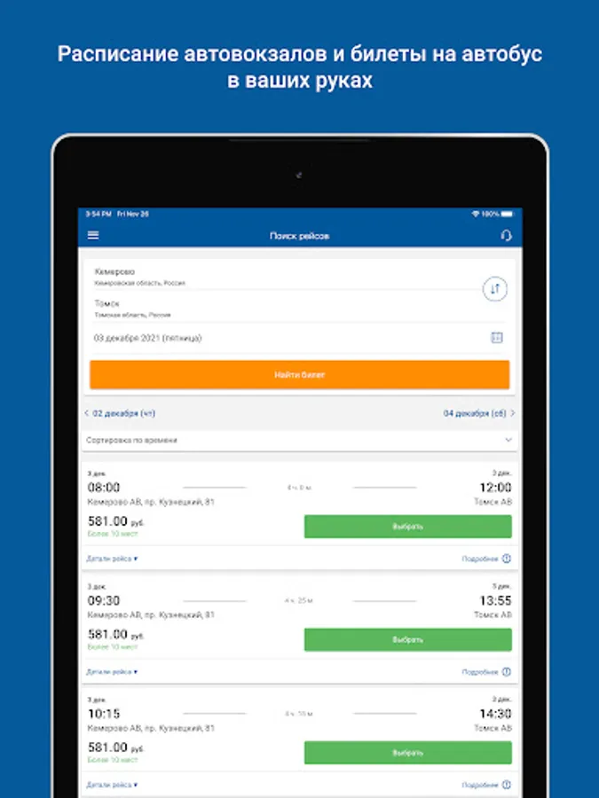 Bus schedule and tickets for bus stations and bus stations of the Kemerovo region, as well as some return flights.