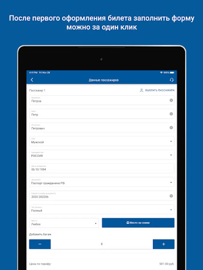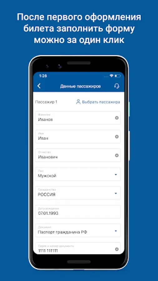 - automatic substitution of passenger data for subsequent purchases of e-tickets