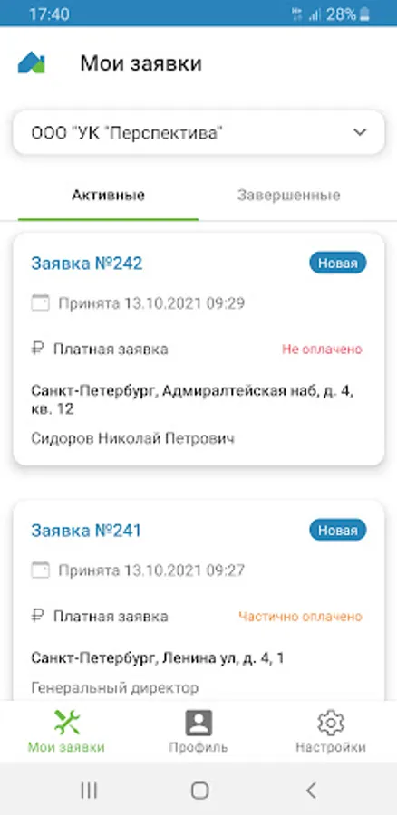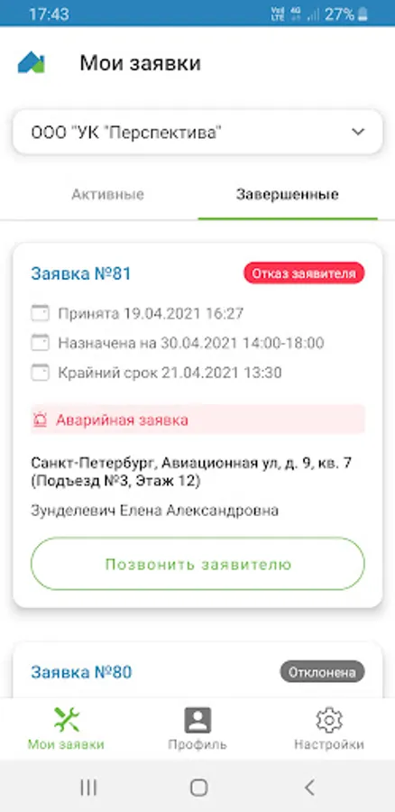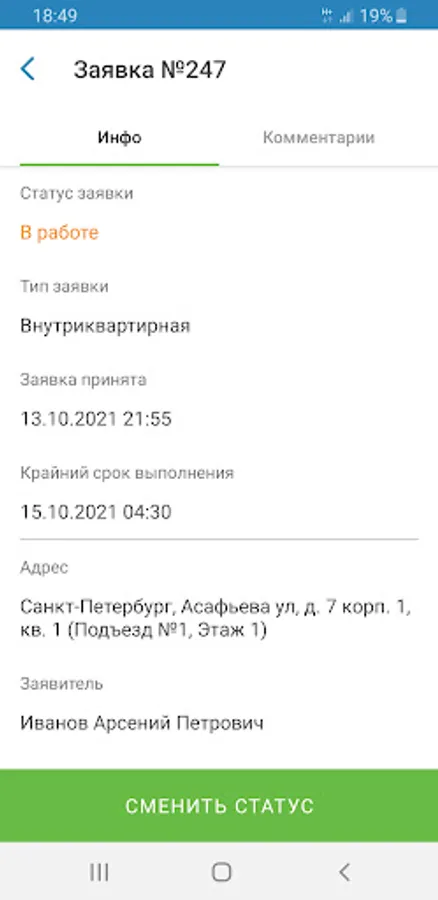 The mobile application is intended for employees of managing organizations that are executors of applications.