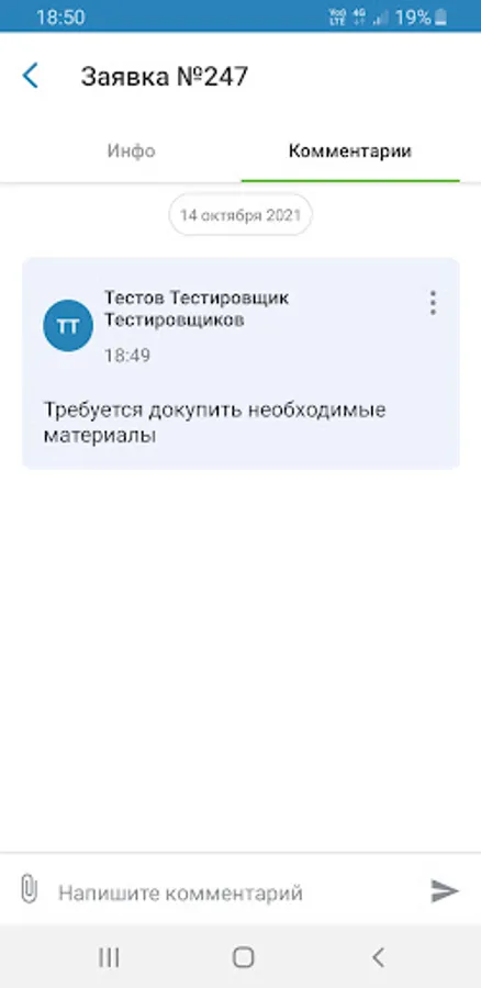 - viewing and writing comments on the application with the possibility of attaching files (photos, videos, documents)