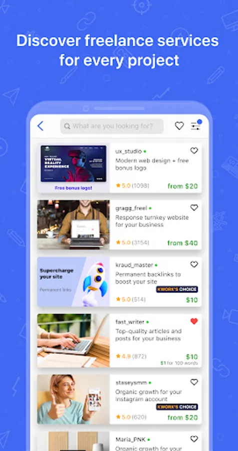 Search, filter, and choose from 500,000+ freelance services in the Kwork Catalog: