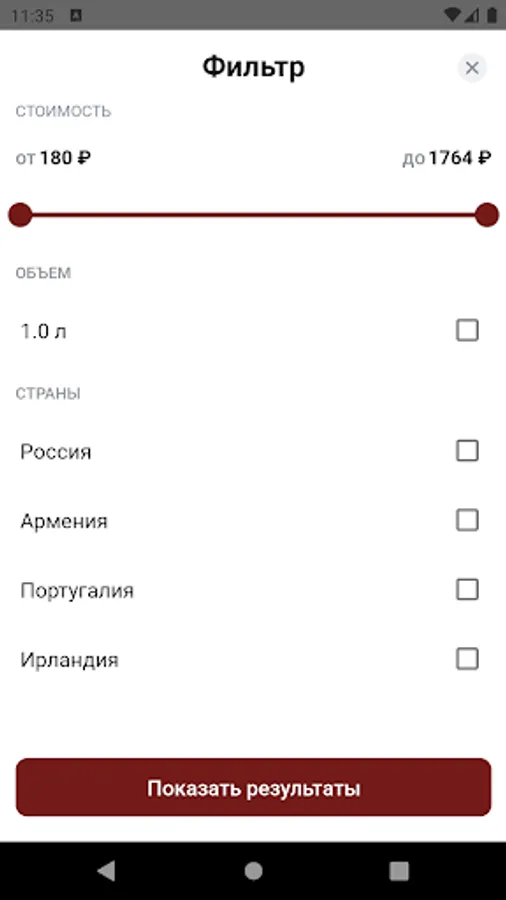 The mobile application is intended for persons over 18 years of age. It is for informational purposes and does not provide for the possibility of online purchase and delivery of goods. Sections of this application may be changed/removed by the developer during the update. Users' personal data is not transferable to third parties.
