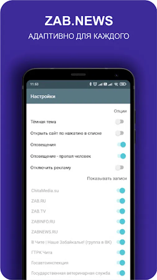 It contains all available news sources that are in the Trans-Baikal Territory. You can flexibly customize the application for yourself by turning off unnecessary media that you are not interested in.