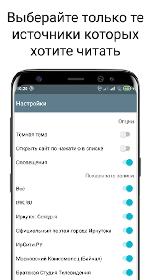 It contains all available news sources that are in Irkutsk. You can flexibly customize the application for yourself by turning off unnecessary media that you are not interested in.