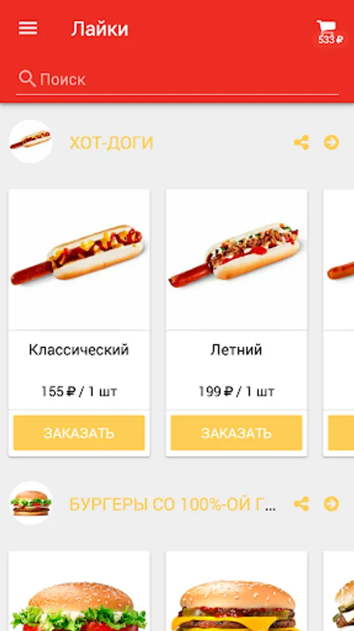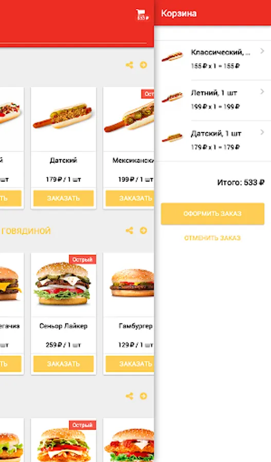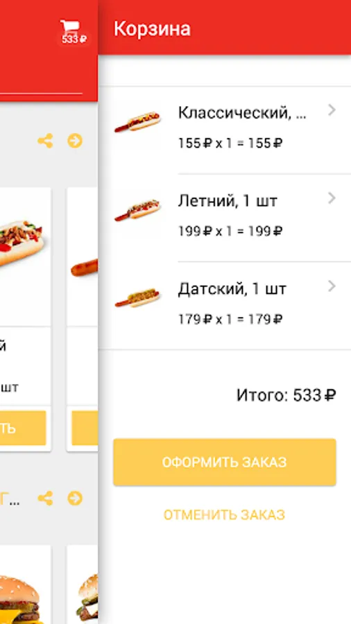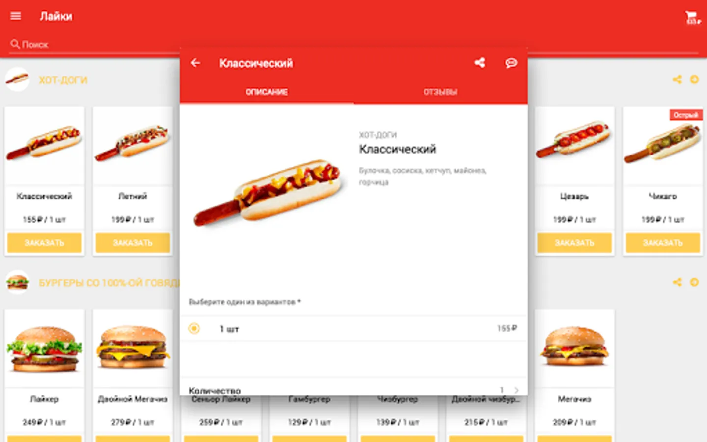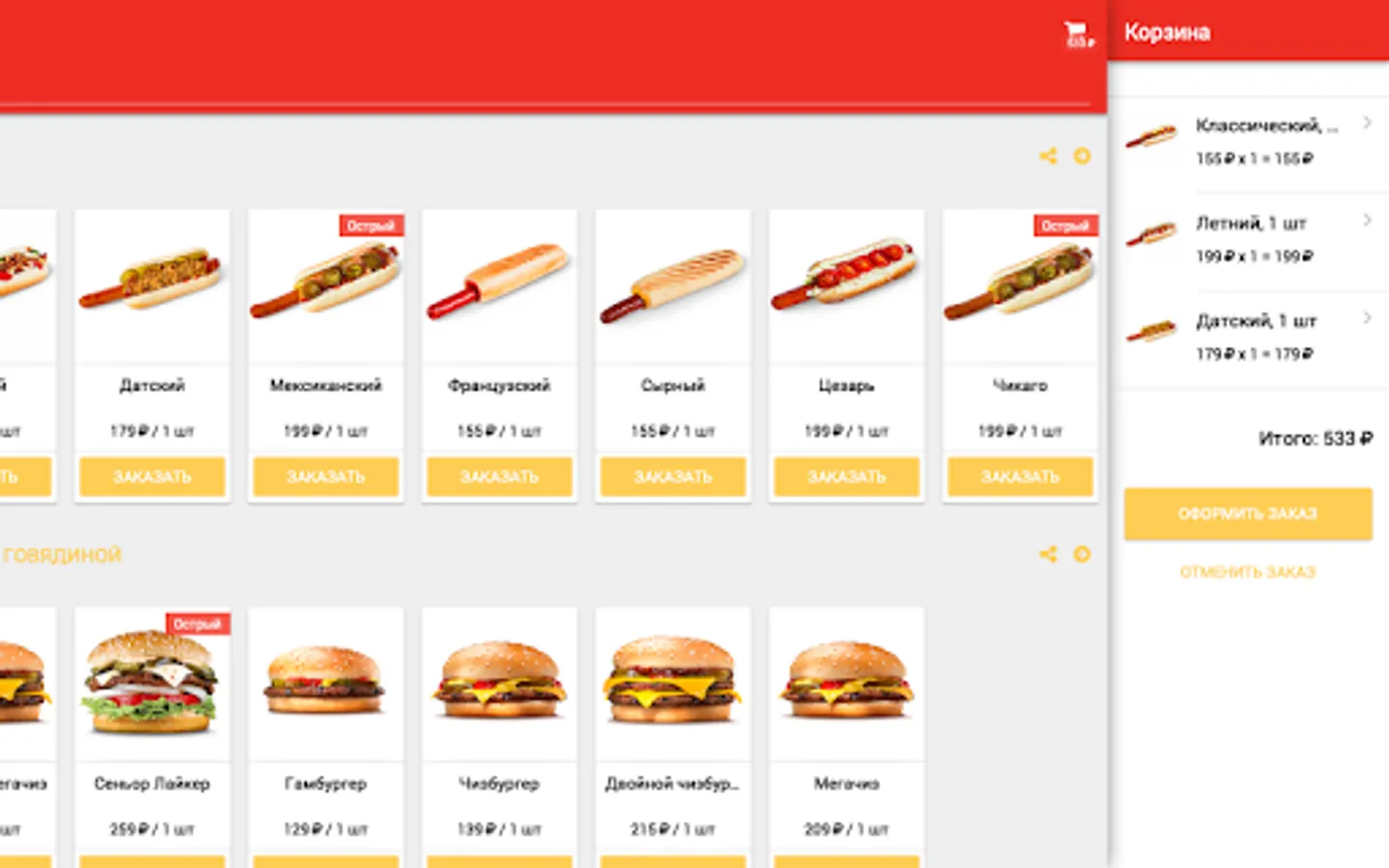 Application for ordering delivery and self-pickup hot dogs, burgers in Magadan.