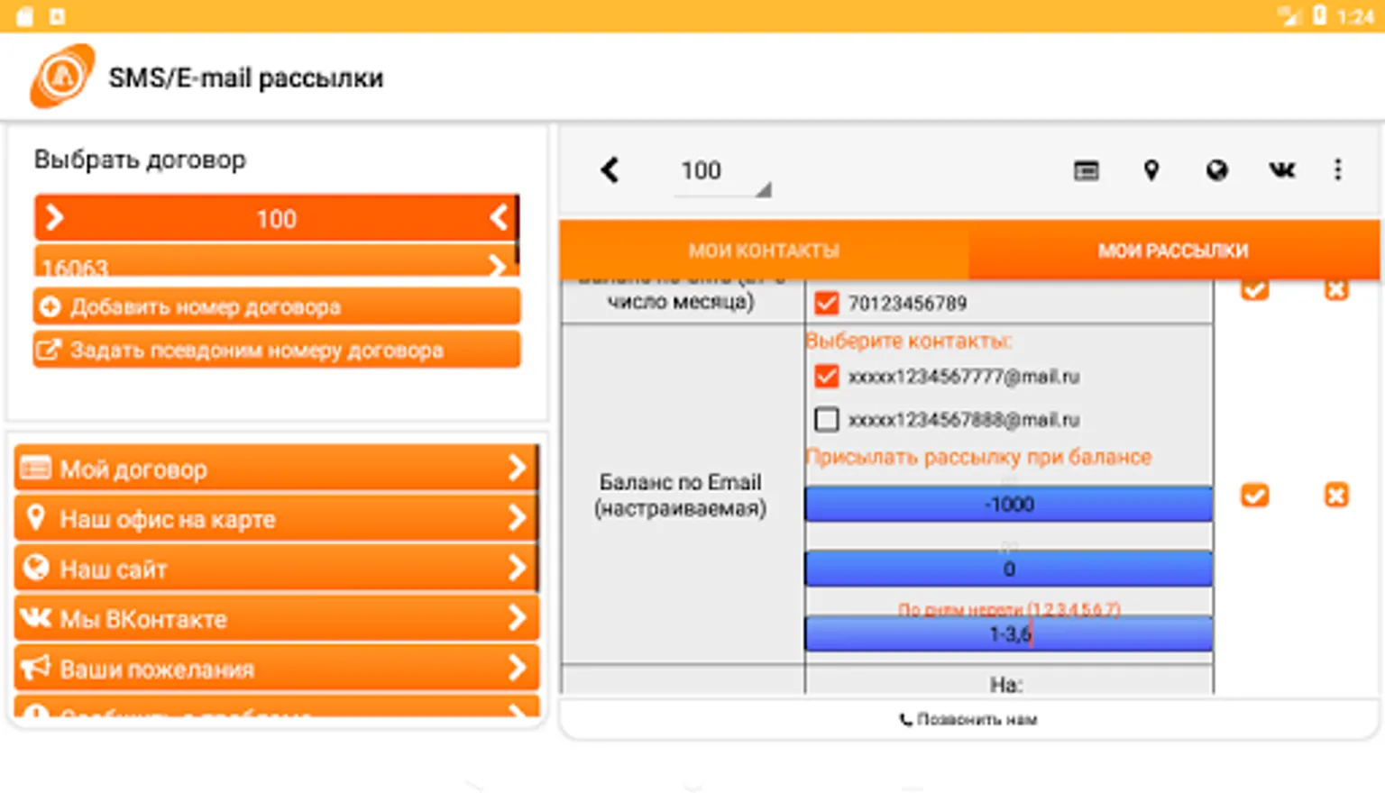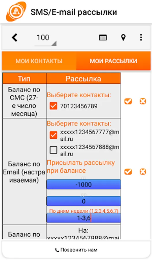 Now you can activate the function of sending balance notifications to your phone number or email directly from your mobile device.