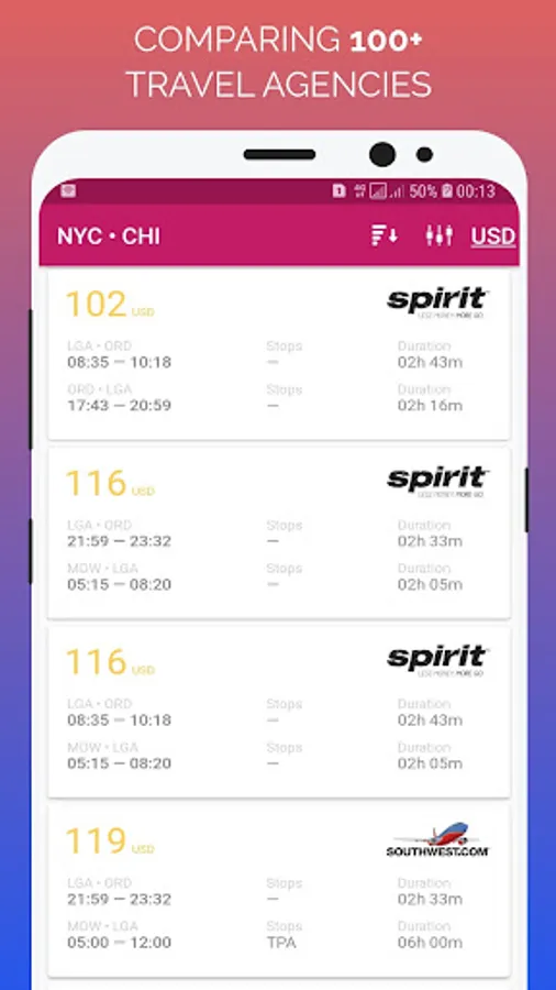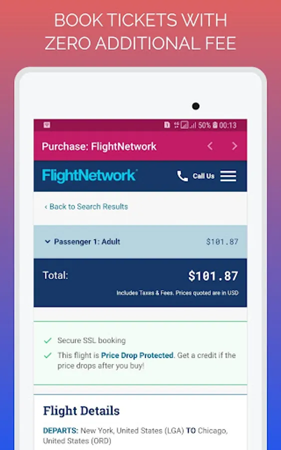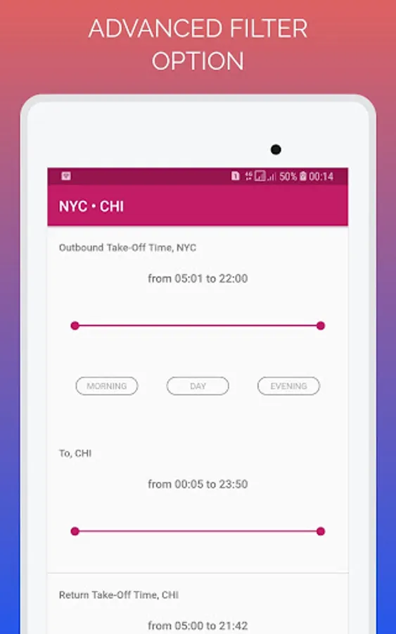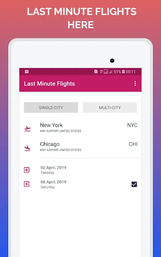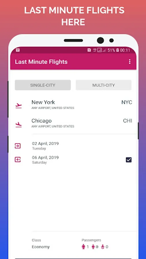 Search your destinations through our last minute flight booking app. We will compare your airfare over multiple travel sites and airline providers and gives you result within 30 seconds of time. And filter the desired one through our advanced filter option and find the best flight. Now, book through the carrier network. It's too simple now.
