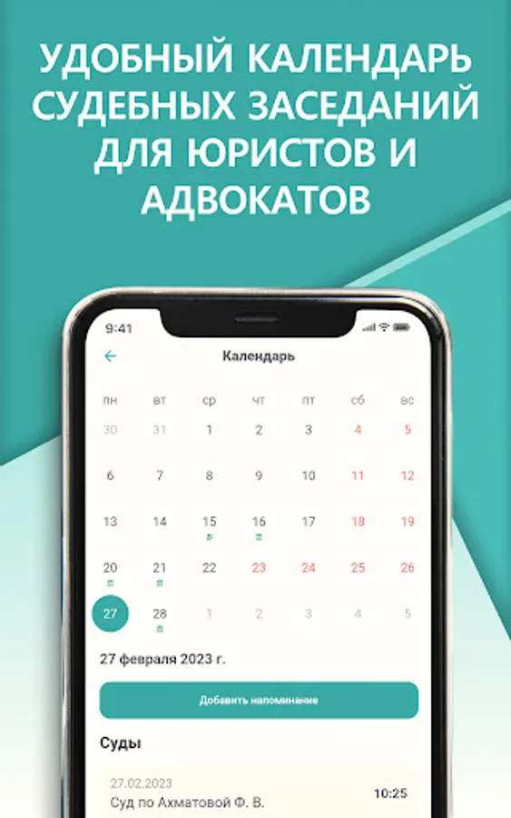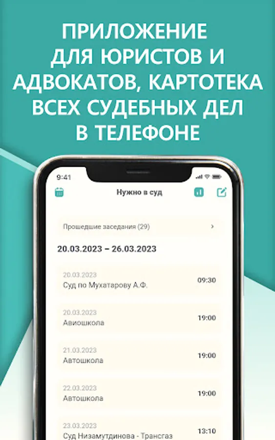 Court and jurisprudence. A unique domestic development, a litigation application for lawyers and lawyers, will remind a lawyer and a lawyer about the upcoming trial, an application for lawyers and lawyers will remind you of the deadline for filing a complaint, notify you of an important meeting or call, help a lawyer or a lawyer to conduct court cases and correctly calculate the court terms. It will help the lawyer and lawyer not to miss the appointed dates. A lawyer or a lawyer will be able to look at the lawyer's calendar at any time without using a computer.