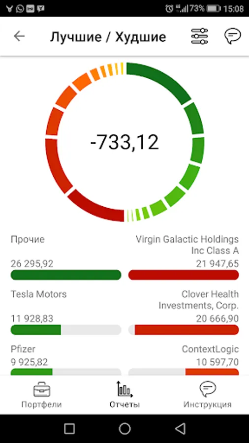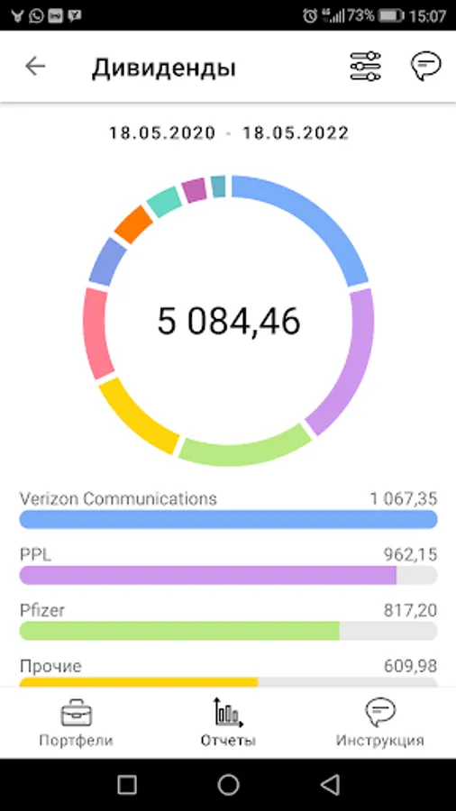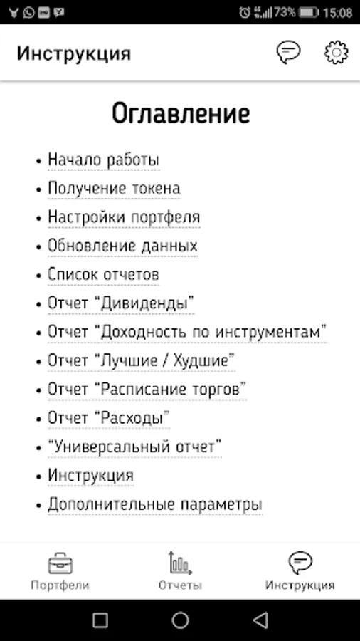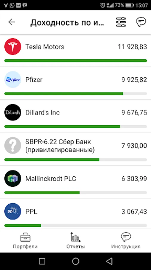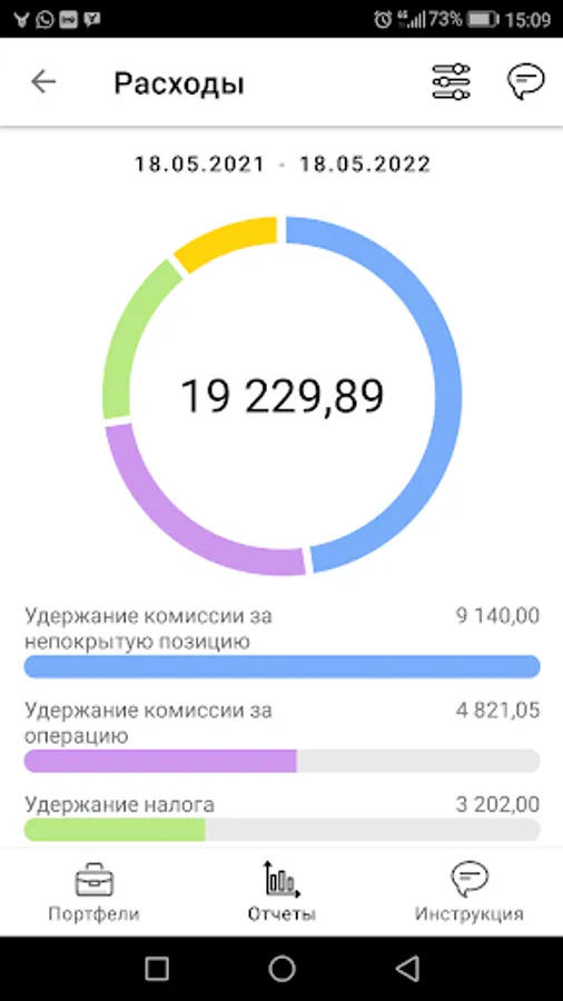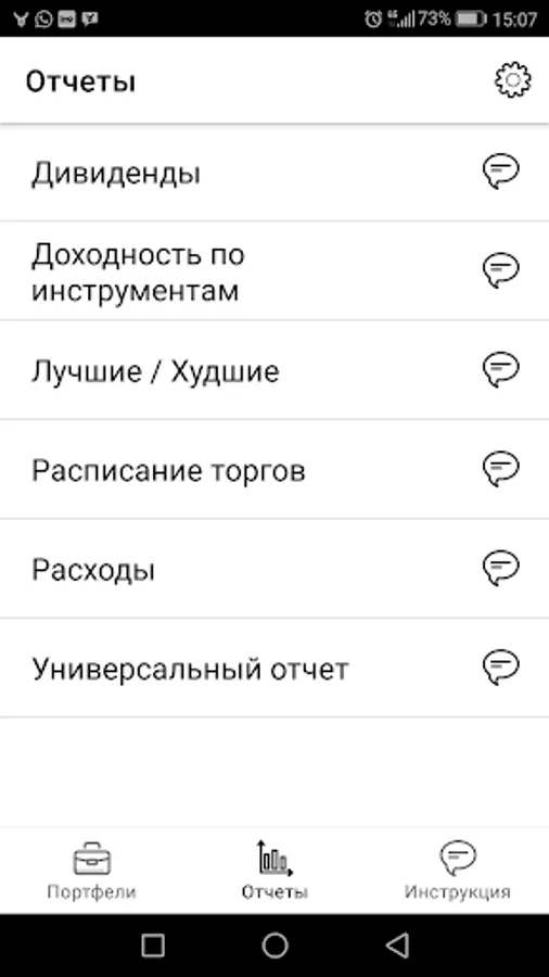 Several reports allow you to evaluate the dividend yield, various commissions, profitability from the purchase / sale of assets, etc.