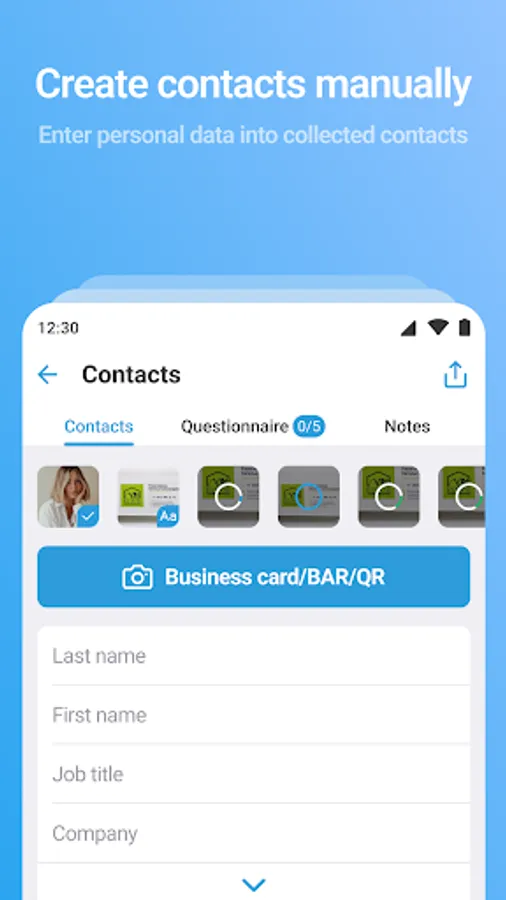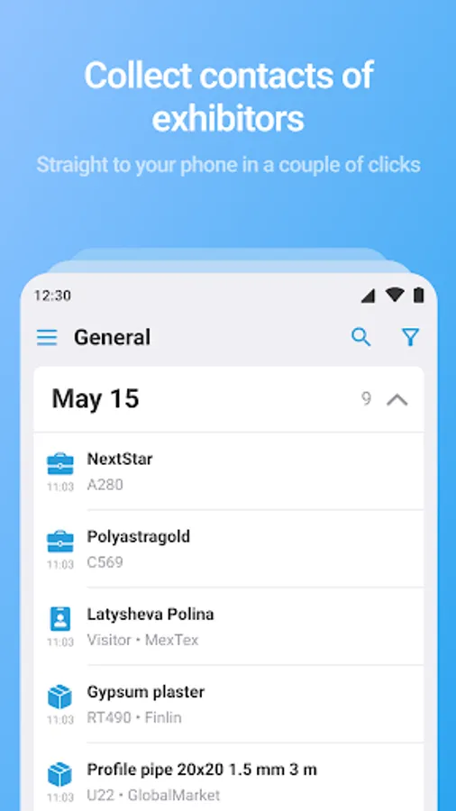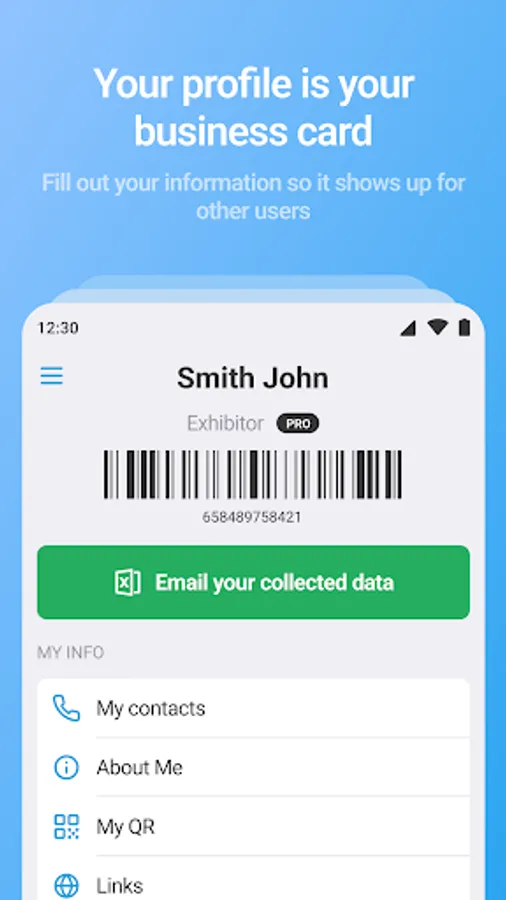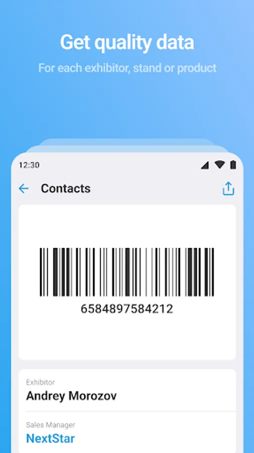Immerse yourself in the events of a real exhibition - scan the visitor's badge, fill in the questionnaire and create a note to the contact, and then upload all the data in Excel format to your email.