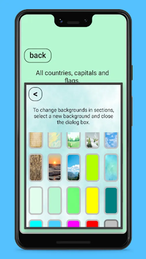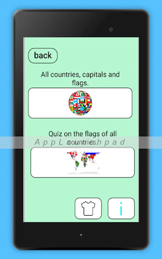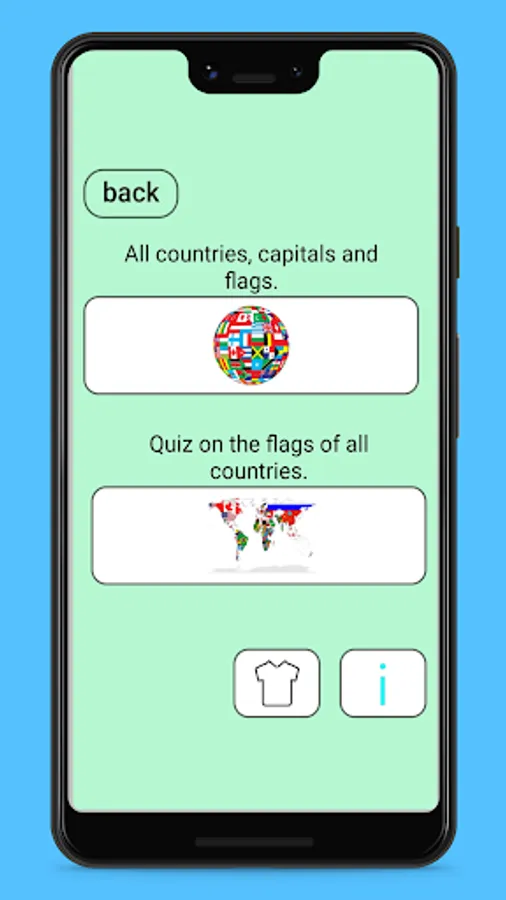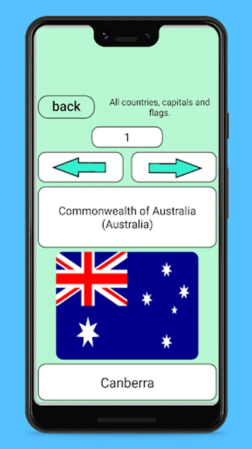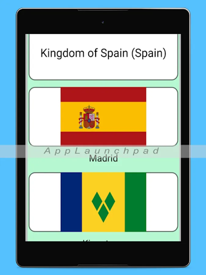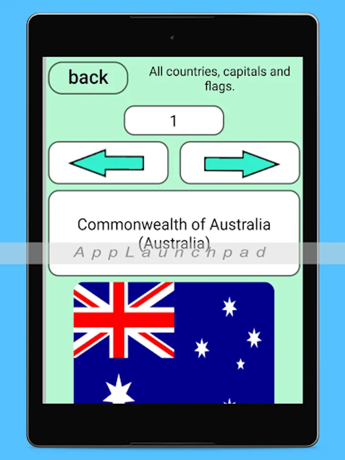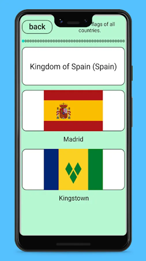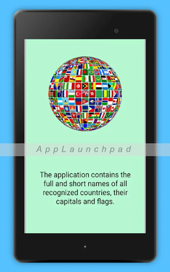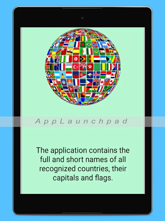 The application contains the flags and stories of all recognized countries and a quiz on the knowledge of flags.