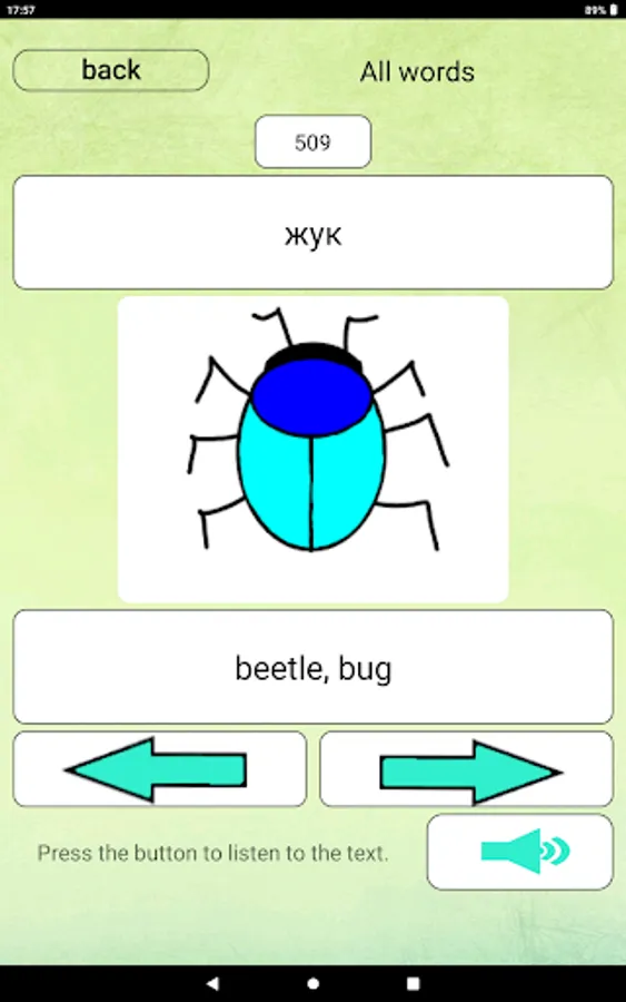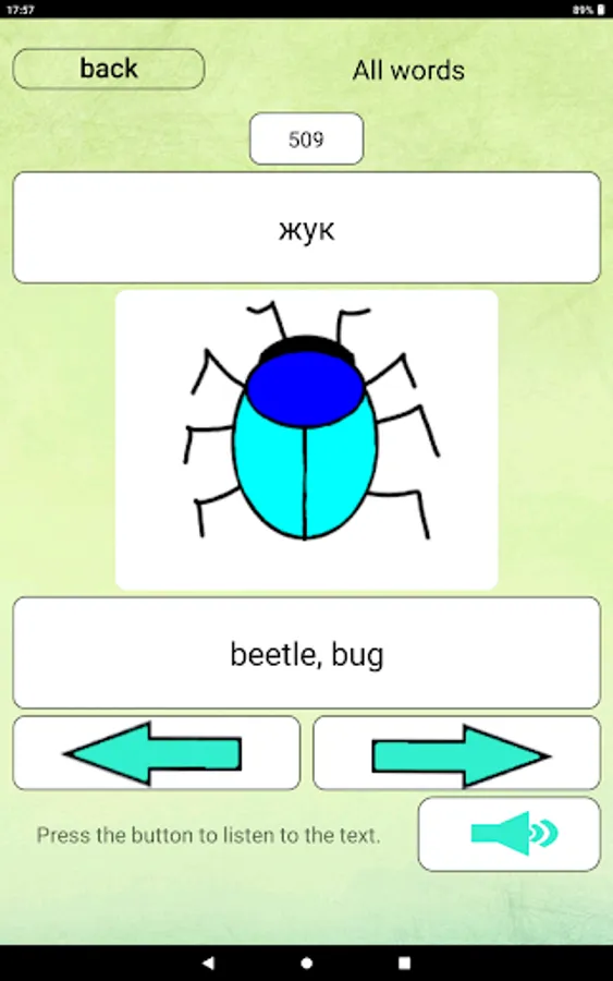 The app includes flashcards for learning words, examples of how words are used in context, and a word quiz. You can practice writing English, German, Finnish, Chinese and Russian words from the keyboard, hiding or not hiding the words you are learning. Colorful memory cards and voice acting for better memorization of words. The "Notes" section has been added to the application, in this section you can add your studied words with translation and images, or use it as a regular notepad. Unnecessary notes are deleted by dragging the note left or right off the screen area. For maximum results, it is recommended to use the application several times a day with an interval of several hours. The application will be constantly updated and updated with new words.