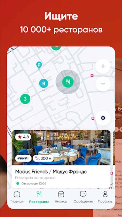 • More than 10,000 different restaurants in Moscow, St. Petersburg and other Russian cities in one convenient application.