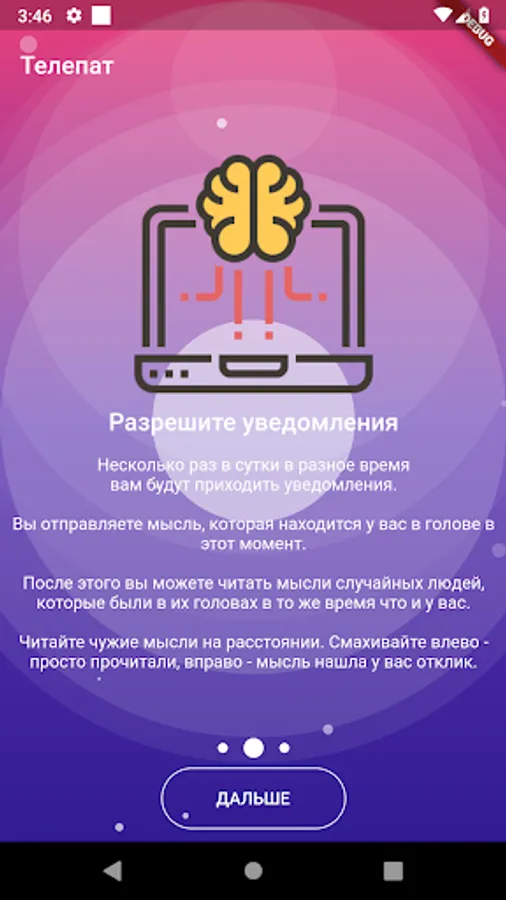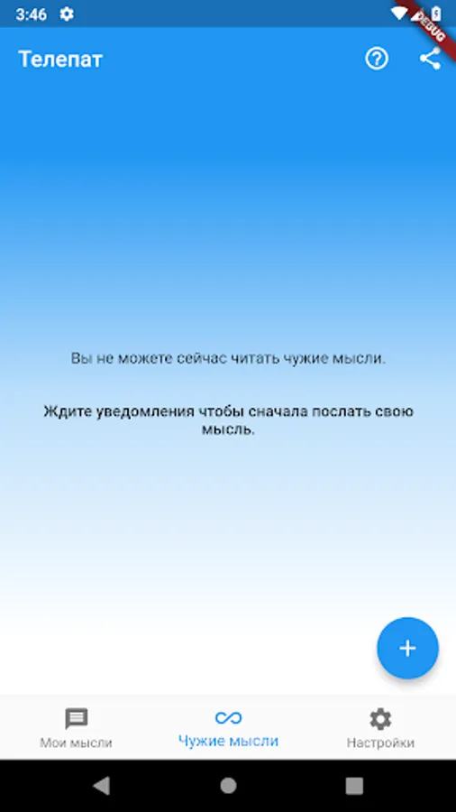 Read other people's minds from a distance. Swipe left - you just read it, swipe right - the thought resonates with you.