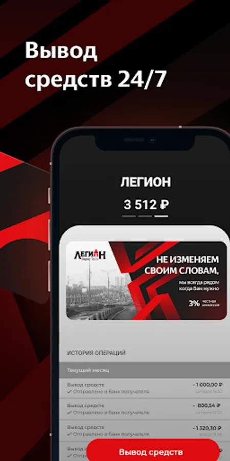 Sometimes you have to wait months for payments. And it's no good! Therefore, we have developed a personal account and a mobile application so that you can withdraw money from your balance every day at any time. Manage money on the balance yourself. You can transfer money from the Legion Taxi Park account to a bank card every day by pressing one button.