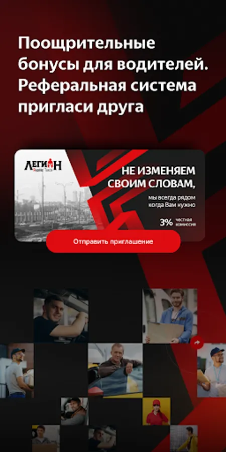 Our mission is to make the driver's job more convenient. We have combined everything you need: a simplified registration system, a simple and instant withdrawal of money from the balance, convenient profile management. No need to go to the office, no need to fill out paperwork and waste your time.