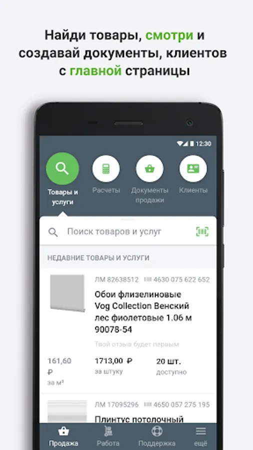 Store is an application for sales floor employees: searching for products, viewing information about a product and customers, preparing sales documents and creating a code for payment, creating orders.