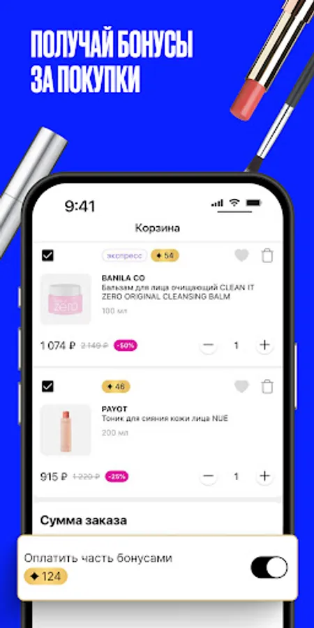 Find the right cosmetics and perfumes faster, add your favorites to your own WISH list and place an order right in the app! And don't forget to turn on push notifications to be the first to know about the most interesting discounts.