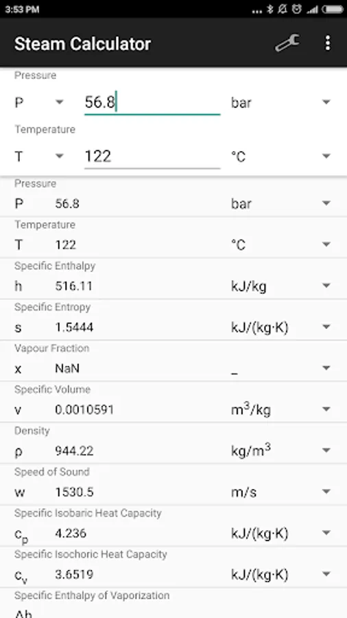 App for calculating the thermodynamic steam properties. This is more usable than thermodynamic tables.