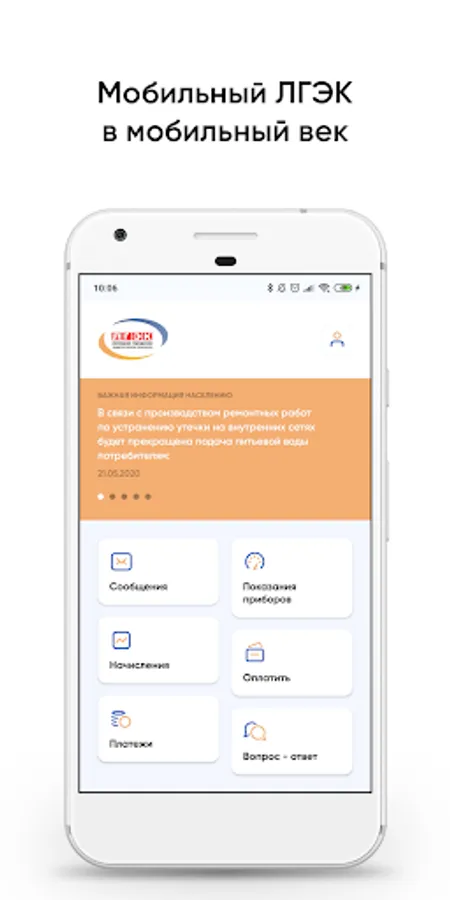 Pay a receipt, transmit the readings of water meters, view the history of charges and payments, ask a question and get an answer to it, as well as much more - in the mobile application of JSC “LGEK”.