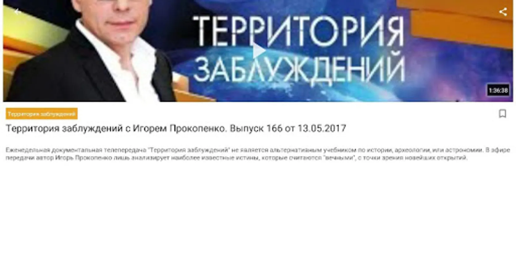 Watch such programs as “Mysteries of Chapman”, “Military Secret”, “Territory of Errors”, Mysteries of Humanity ”,“ Most Shocking Hypotheses ”and new documentary projects on a smartphone, tablet or on TV.