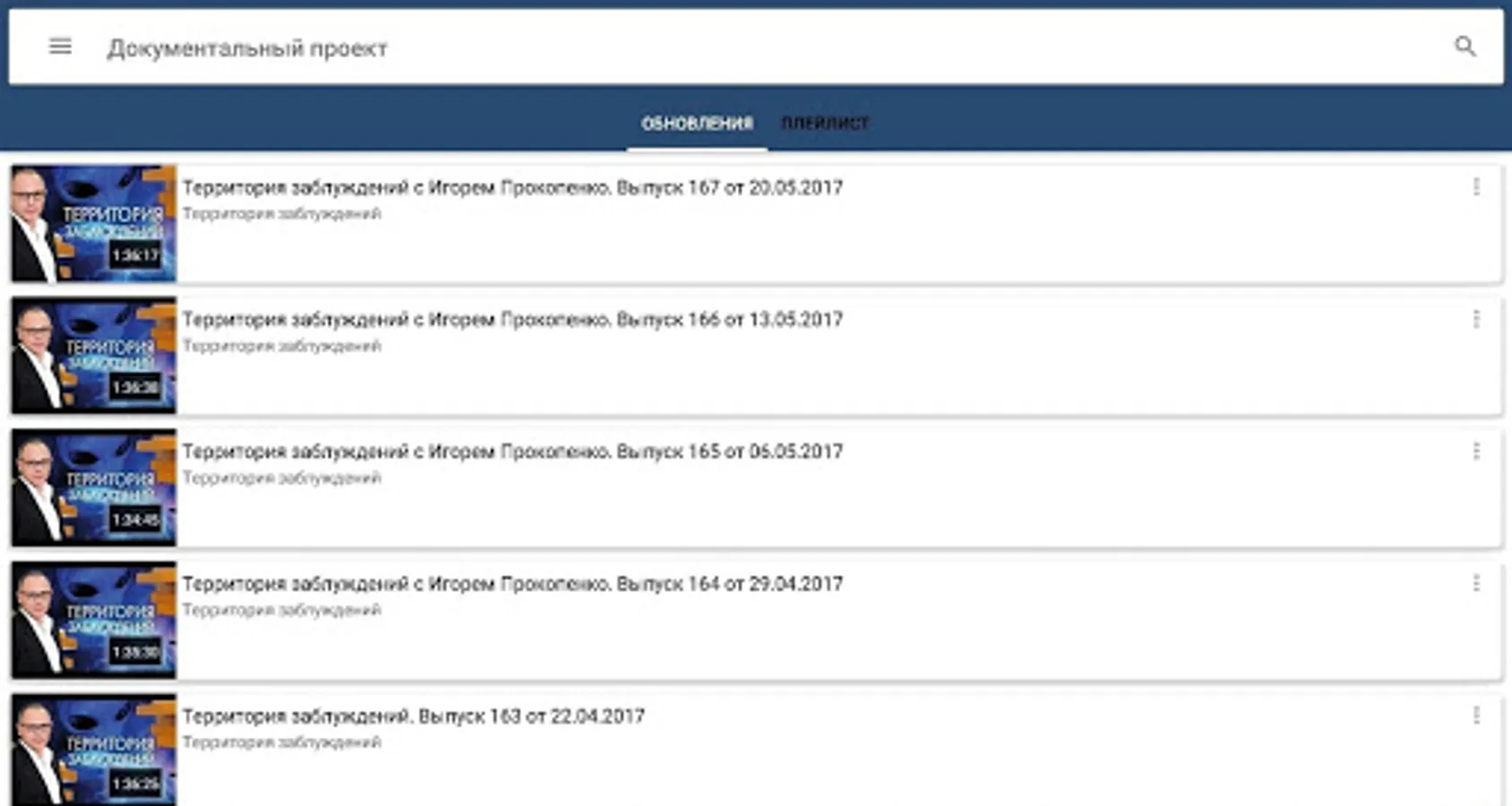 - All videos, series of the Documentary Project application - are shown from the Youtube channel
