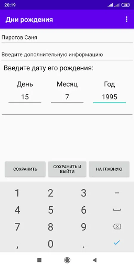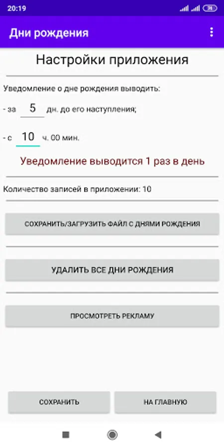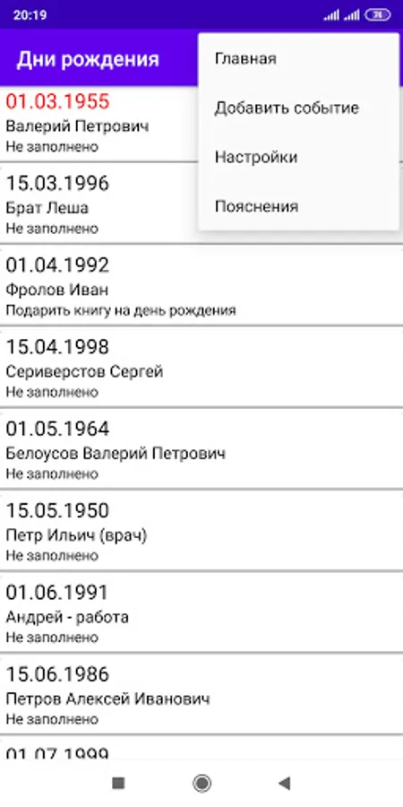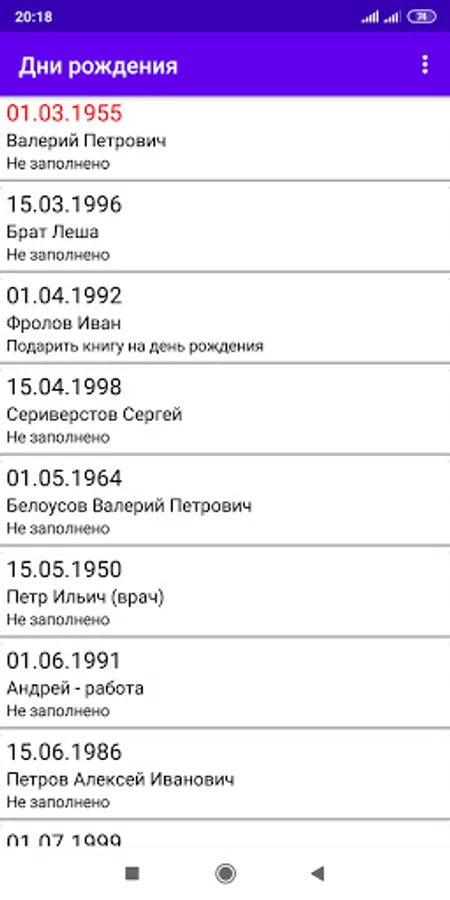 The "Birthdays" application is a simple application with the minimum necessary functionality to remind your relatives, loved ones, friends and acquaintances about the upcoming birthdays.
