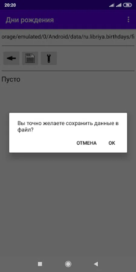 In addition to the main function of the application - a reminder of upcoming birthdays - the application allows you to save all events to a file. The birthday file can be imported to other devices for further uploading to a similar birthday application.