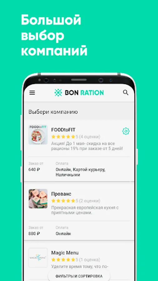 We have combined all the services of proper nutrition into one application. You will have enough options for tasty and healthy food for every day. On average, meals are not repeated for 21 days.