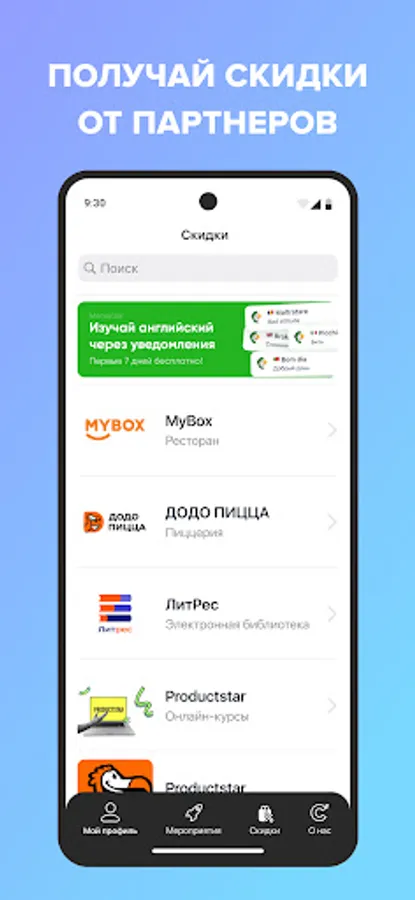 Get discounts at partner establishments throughout the country